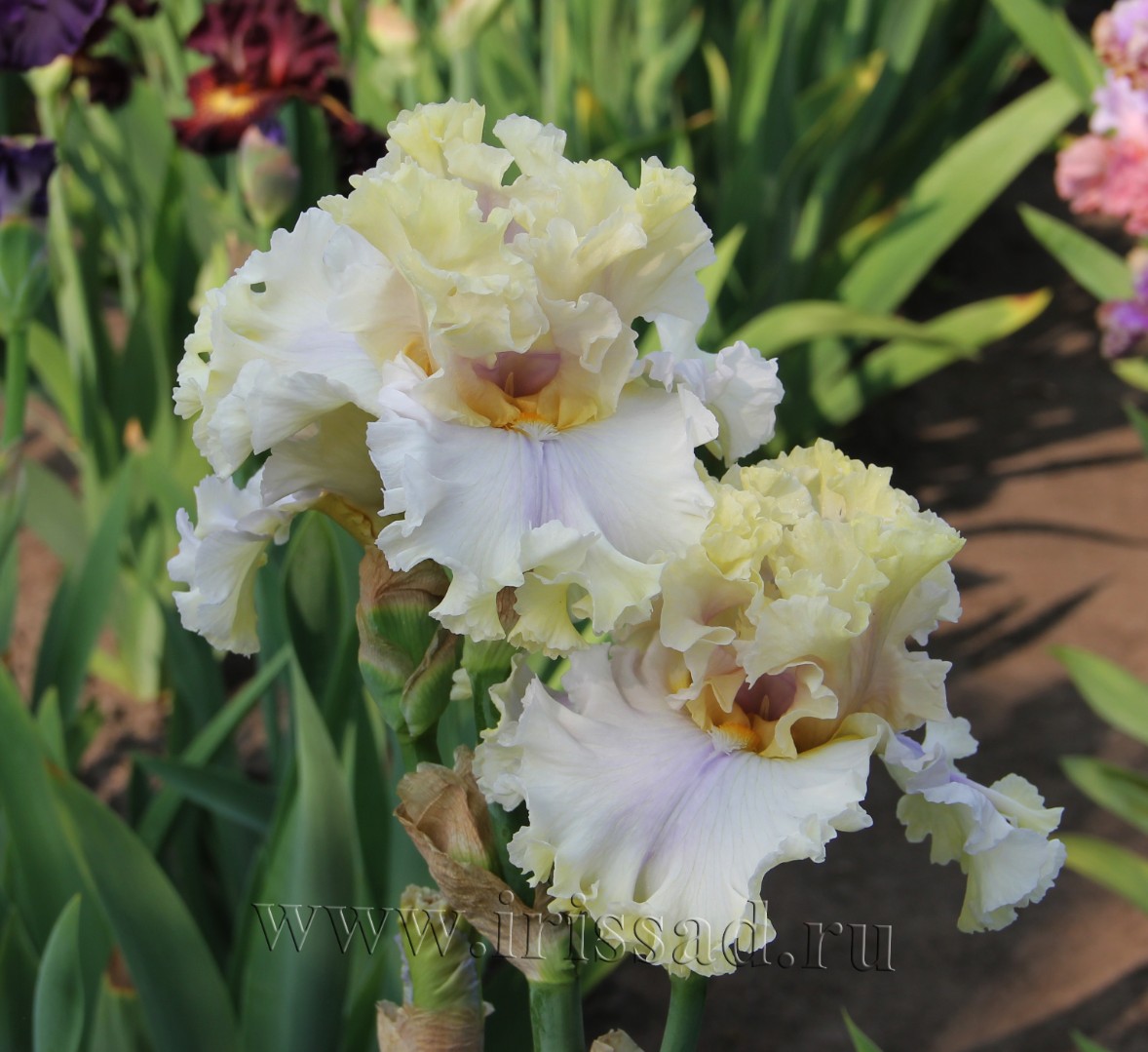 Бледно-кремово-желтый, с добавлением лаванды в средней части. Фолы светло-лавандовые с более глубоким оттенком в центре; очень красивая пастель.