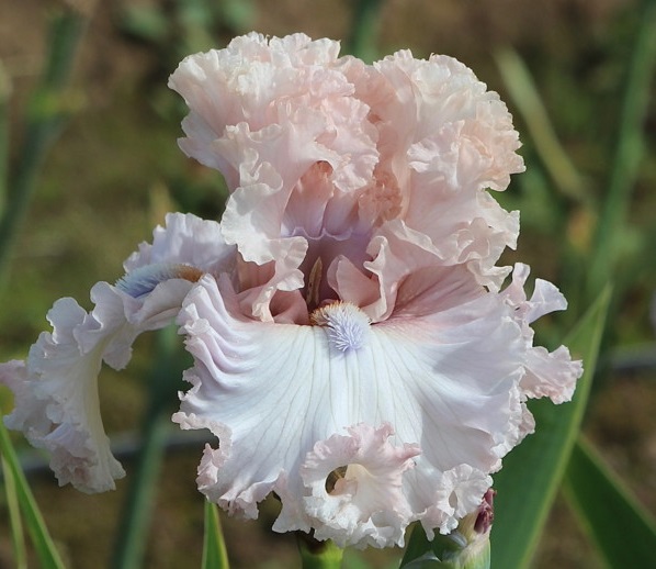 Насыщенный розовый до лососево-розового оттенка на фоне белых водопадов, окрашенных в лавандово-розовый цвет, углубляющийся к краям. Темно-розовые стебли и очень крупные, матово-голубые бородки - вот что действительно делает этот сорт особенным. Красиво взъерошенные и слегка завязанные на крепких стеблях