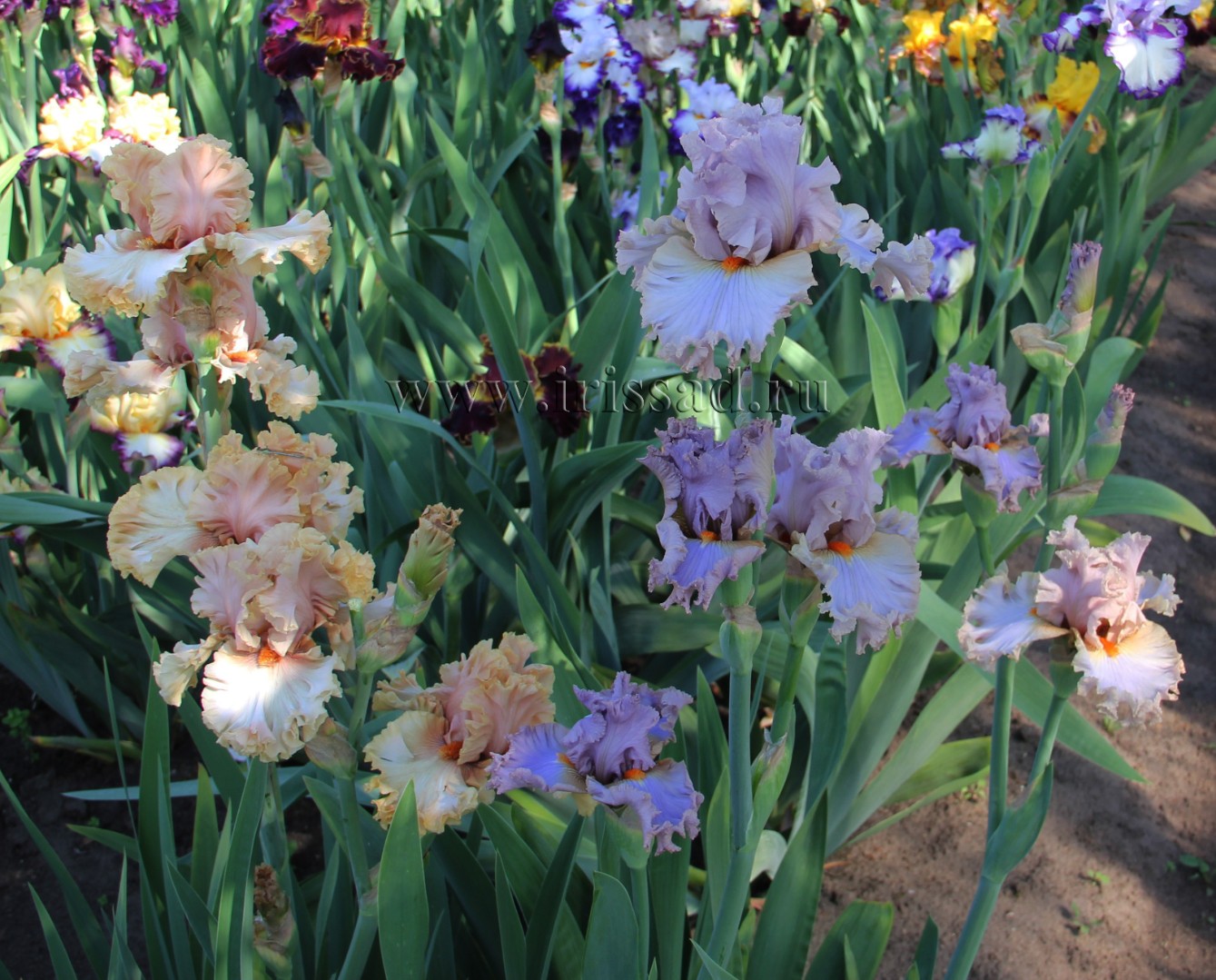 Сладкий аромат. Стандарты имеют розовую серединку со светло-кремово-желтыми краями. Фолы кремовые с темно-розовыми верхушками и переменной степенью окрашивания, а затем окрашен в медово-розовый цвет. Очень гофрированные цветки держатся на высоких крепких стеблях. Ранний сорт, который продолжает цвести вплоть до середины сезона. Красивый.