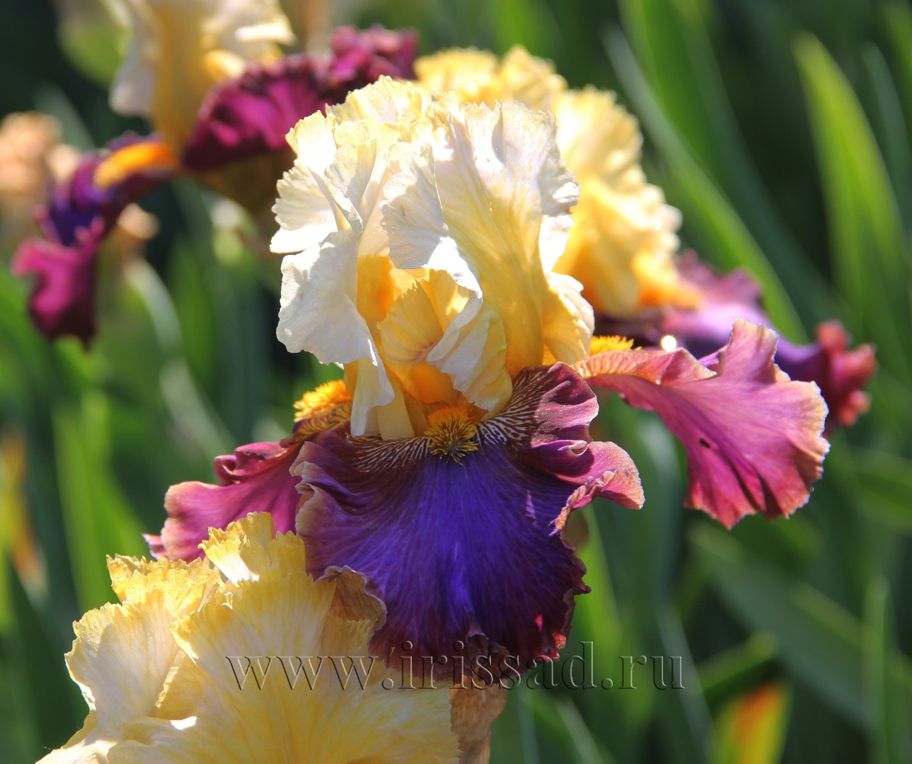 Стандарты приглушённо- белого цвета вокруг лимонно-золотого основания с лимонно-золотой каймой. Фолы королевского бархата с красно-коричневой каймой и плечиками.Бородка цвета старого золота.Сладкий аромат.