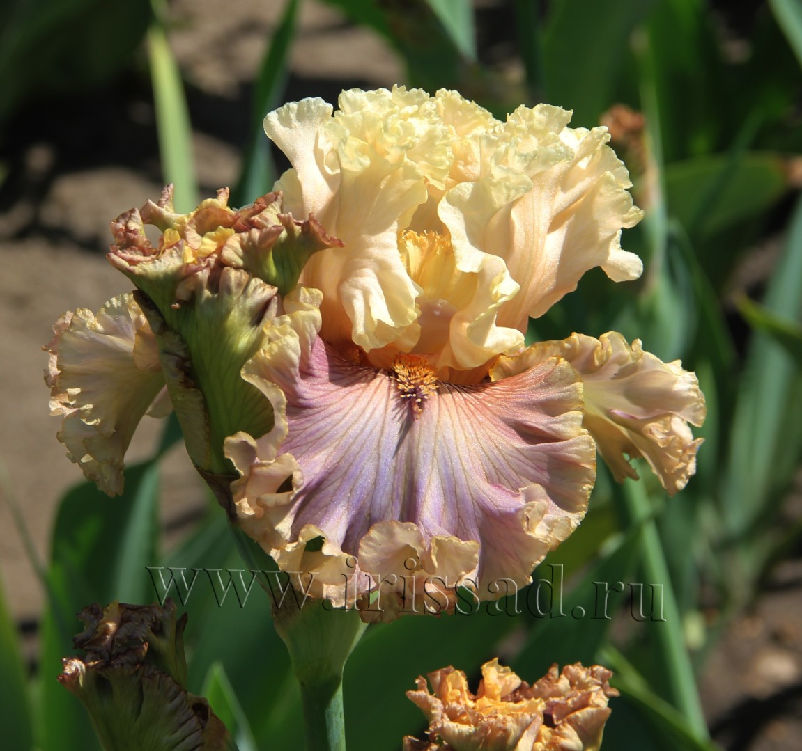 Светло-лимонно-желтый с розовым оттенком, более густой в центре. Смесь лаванды и розы ниспадает с более глубокими текстурными прожилками и лимонно-желтыми краями. Большая великолепная гофрированная форма. Не тот цвет, который подходит всем, но тот, который я люблю и с нетерпением жду встречи с ним каждый год. Определенно уникальный!