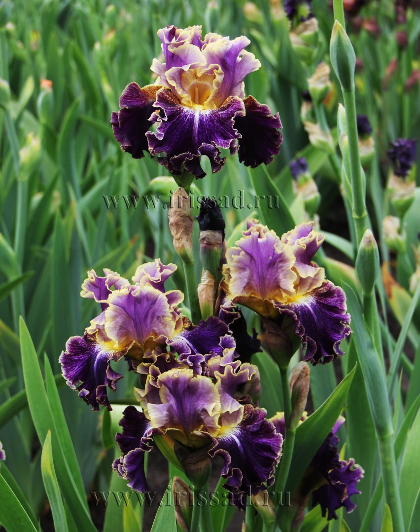 Сладкий аромат. Такие цвета всегда были любимыми, в восторге от Spine Tingler. Форма божественна - очень широкие и гофрированные цветки на цветоносах с большим количеством бутонов. Его букет приближается к совершенству. Чернильно-фиолетовые стандарты с красивой точной золотой окантовкой. Темно-фиолетовые фолы с красивым кремово-белым пятном lumi, которое подкрашено золотистым с короткой белой стрелкой под оранжевой бородкой. Очень широкие волнистые фолы окаймлены золотом. Рекомендуется для любителей этого узора.